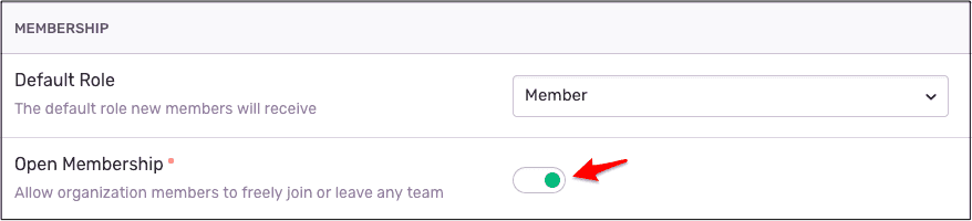 If "Open Membership" is toggled off, team access is on an invite-only basis. Users can request to join a team and invite others to join their teams, but access requests and invitations must be approved by an Org Manager, Org Owner, or a Team Admin for that team. Org Admins who aren't part of the team also need to follow this process to join. Once they join, they automatically become a Team Admin.